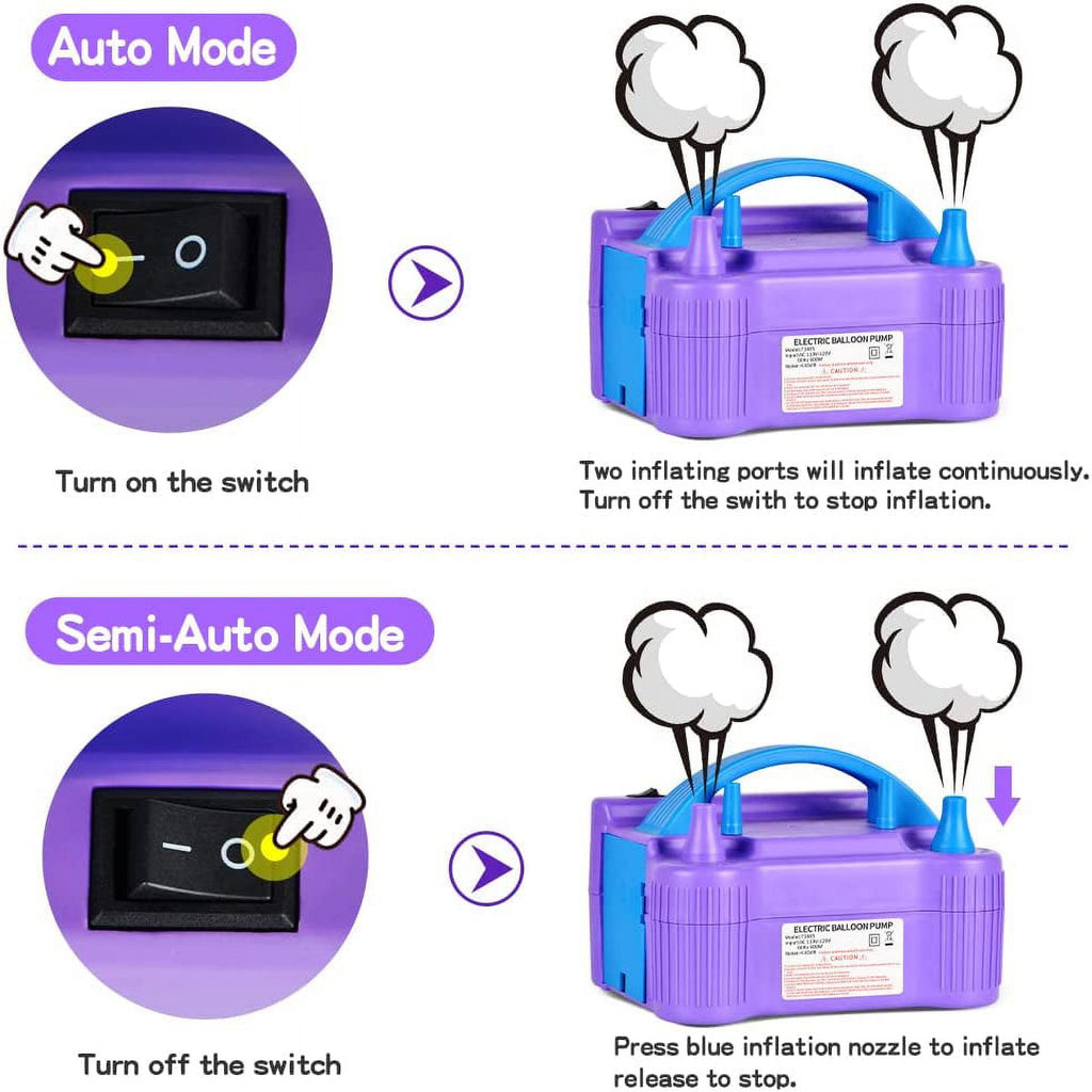 - electric balloon pump can be operated manually or automatically. Dual inflating ports quickly inflate two balloons in seconds simultaneously. Make balloon inflating become effectively and effortlessly.